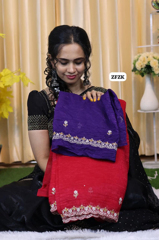 Fendy chiffon saree with pearl work border 😍🥳
