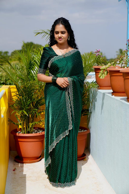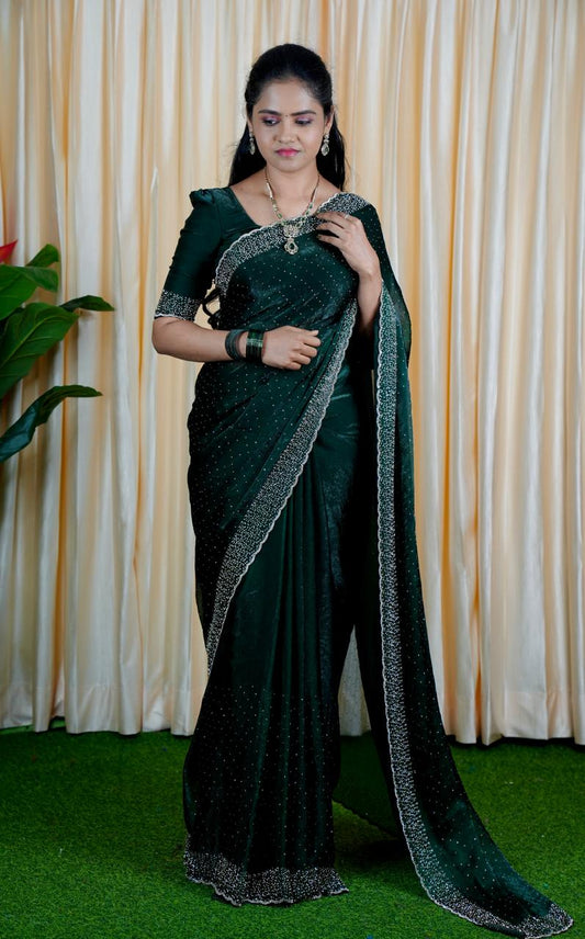 Space silk saree with stone work 🍏📍🥳 Dispatch time 7- 10 days
