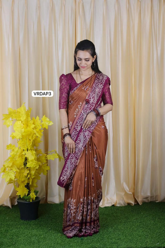 Aadi offer🌹Most trending ajrak print Chinnon .semi silk saree