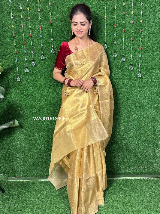 Aadi offer🌹Semi katan tissue saree with running blouse😍