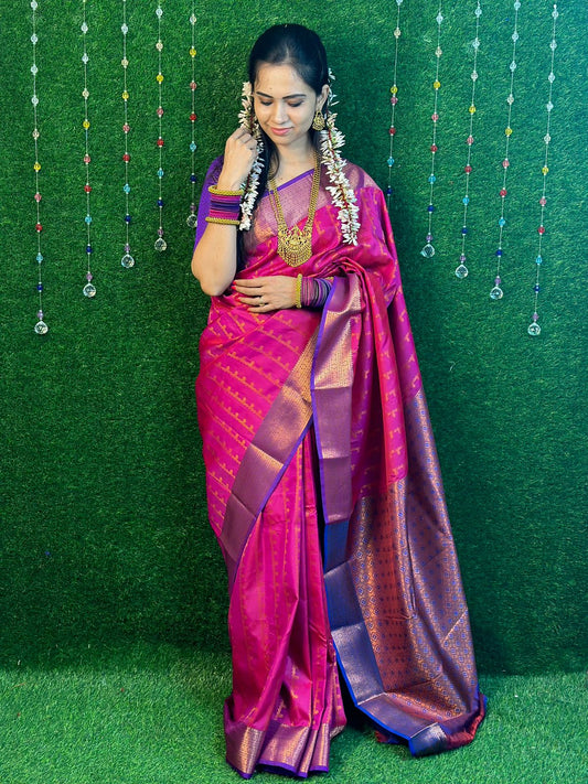 Kanchi Semi soft silk saree with contrast blouse (Reddish orange)🥳