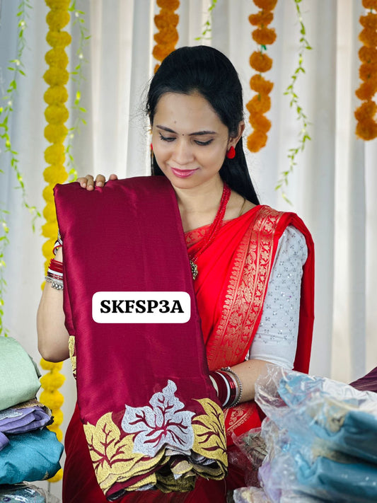 Premium Chiffon saree with cut work border, running Pallu and blouse prebook🎁