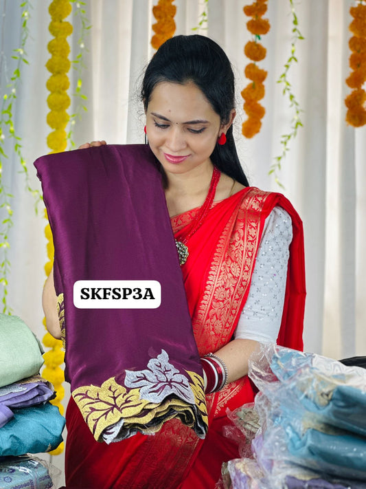 Premium Chiffon saree with cut work border, running Pallu and blouse -prebook🎁