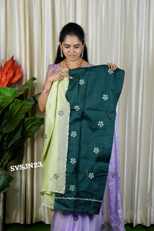 Premium Soft Georgette with full sequins and lace embroidery border. Lace border extended til hip portionāā