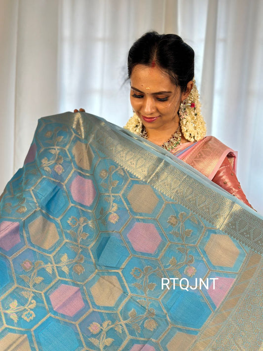 Premium quality shining multi color katan silk saree⌛