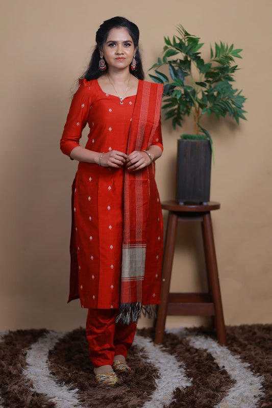 Premium Raw silk Salwar suit with kalamkari dupattta (unstitched)🥰⏰