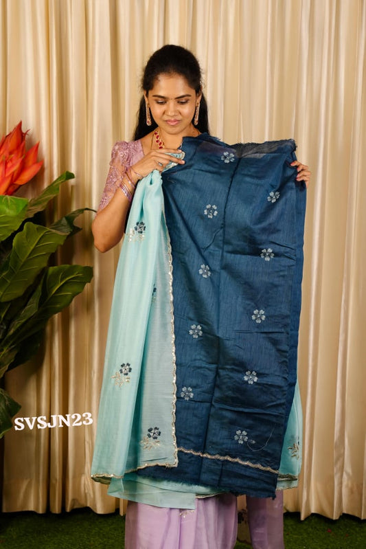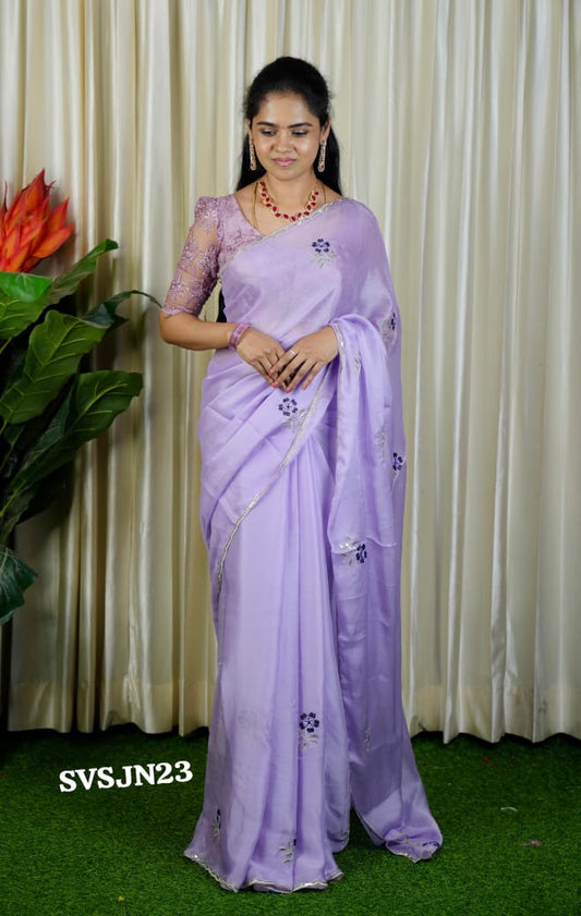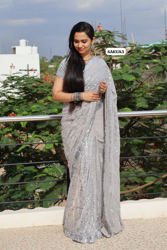 Premium Soft Georgette with full sequins and lace embroidery border. Lace border extended til hip portion❌❌