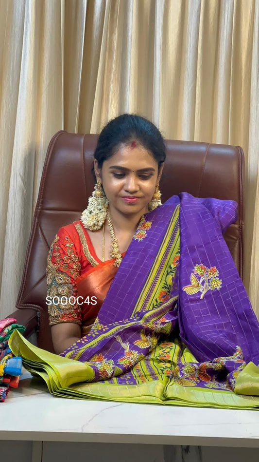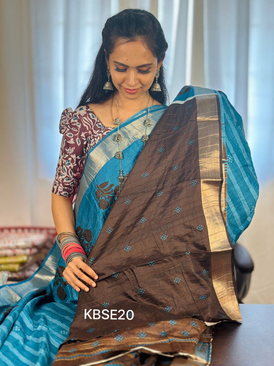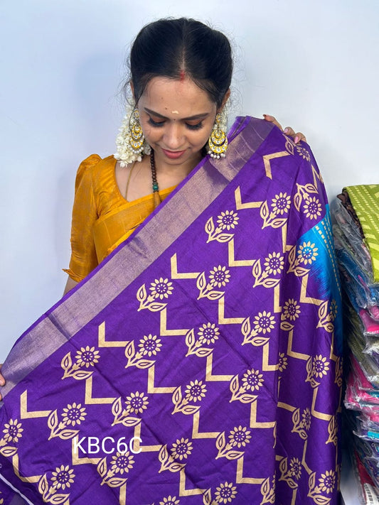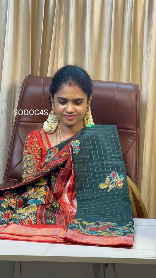 Soft Chanderi cotton With Digital Print & Running Kalamkari Blouse. Pallu Stiched With Fumkaš„³