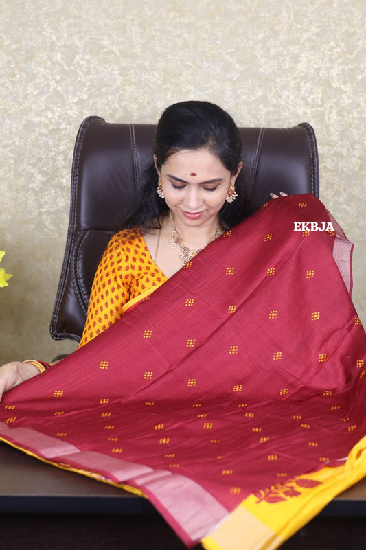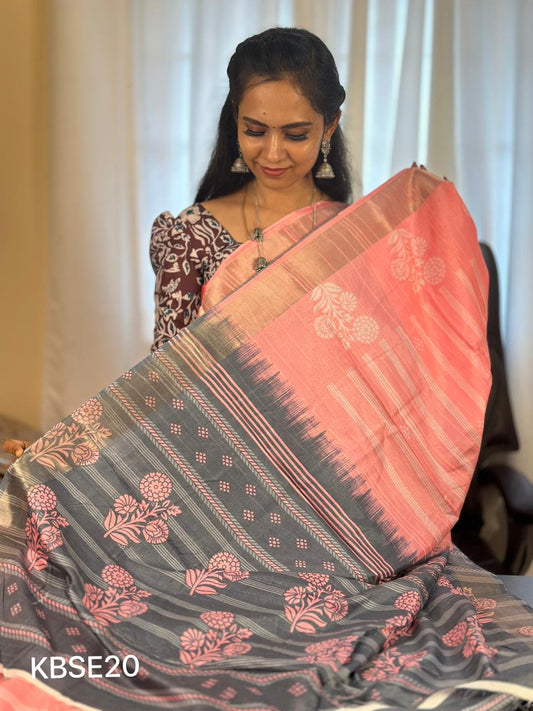 Soft Chanderi cotton With Digital Print & Running Kalamkari Blouse. Pallu Stiched With Fumkaš
