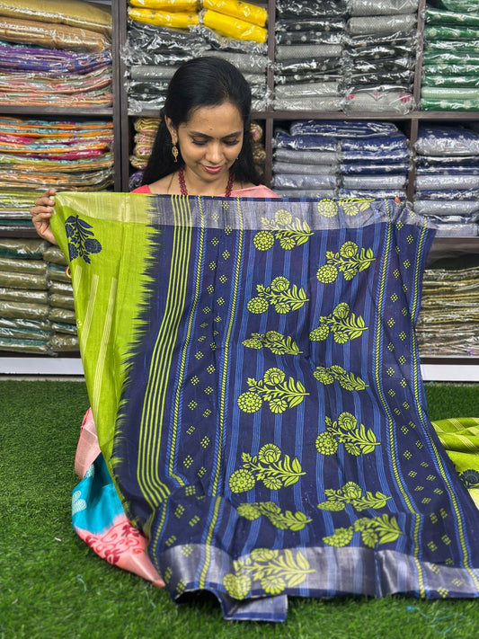 Soft Chanderi cotton With Digital Print & Running Kalamkari Blouse. Pallu Stiched With Fumka š„³