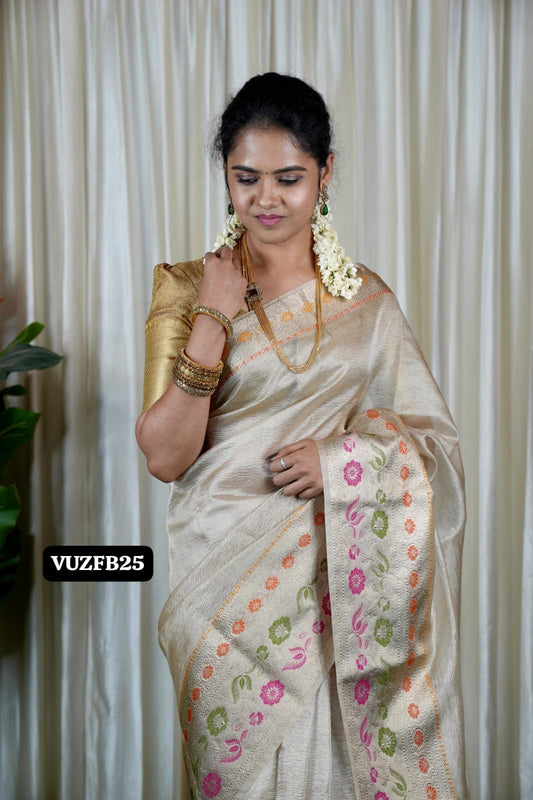 Crushed tissue saree with cutwork border Green colour prebook prebook 🥳