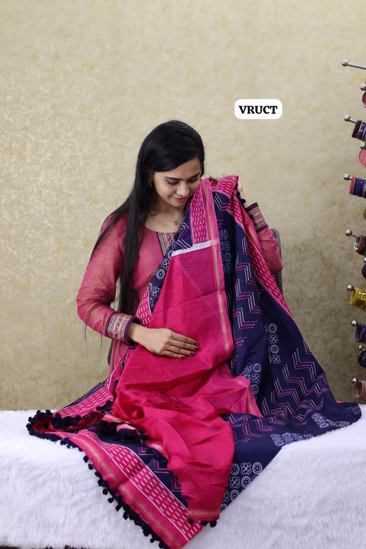 Crystal cotton with Pom Pom lace saree Ⓜ️