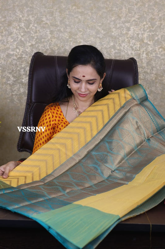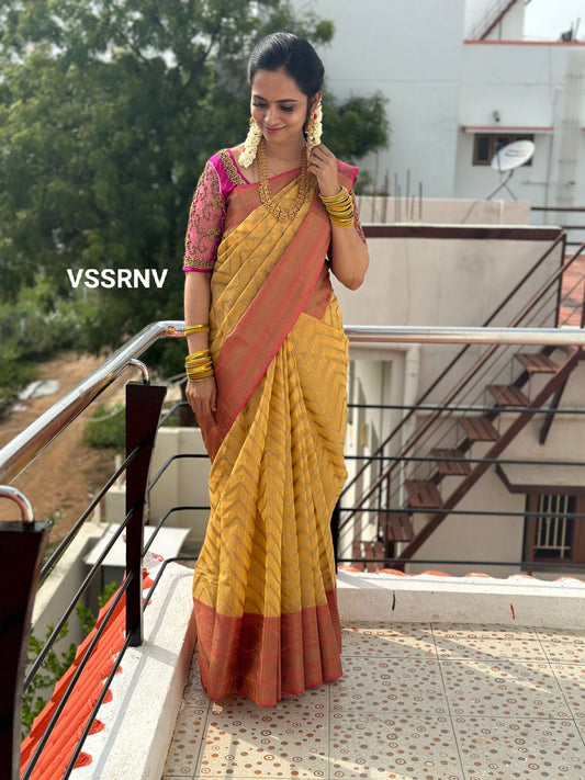 Double shade semi soft silk saree with zari border, rich pallu and contrast blouseš„³