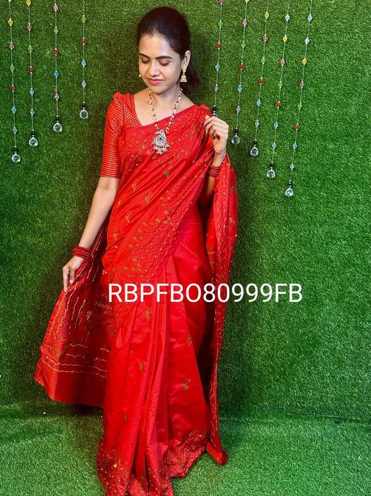 Embroidery tissue saree 🌹 RED ROSE prebook❌