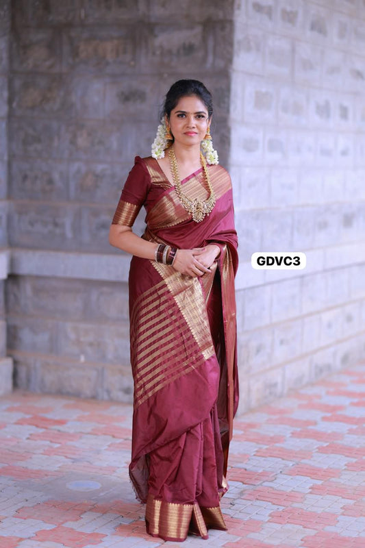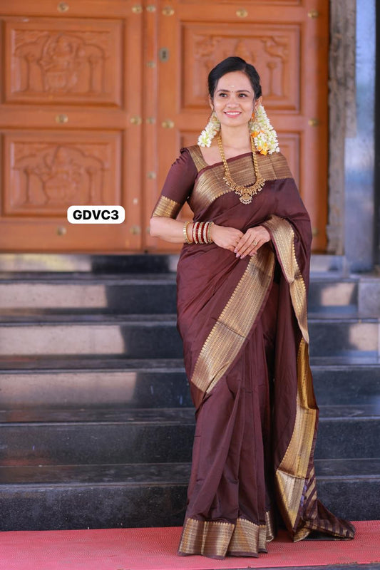 Semi Mysore silk saree. Deep chocolate brown🥳