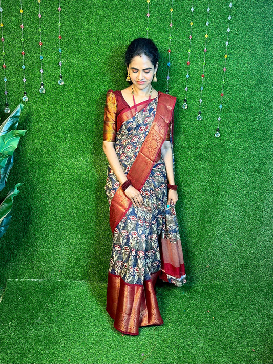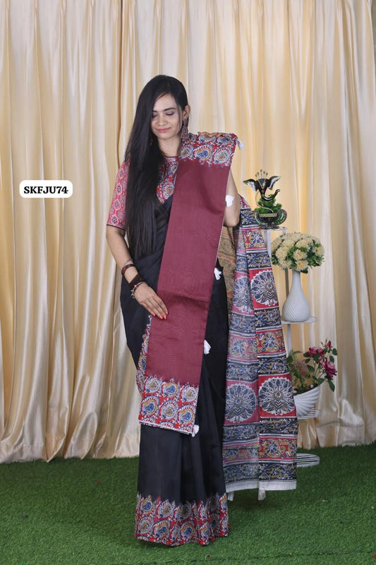 Soft Chanderi cotton With Digital Print & Running Kalamkari Blouse. Pallu Stiched With Fumka😍