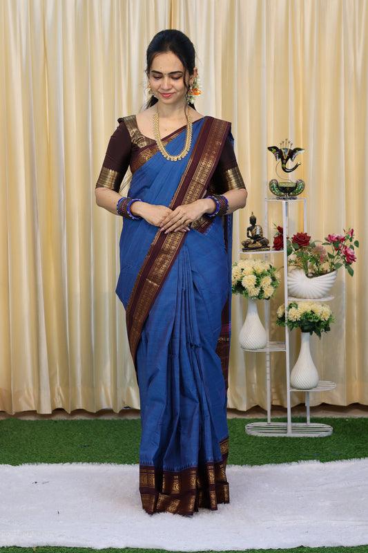 Premium Chettinad Cotton sarees. with running navy blue🍏🍄