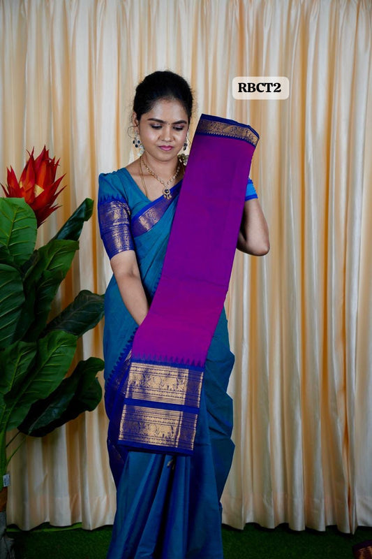Kanchi Cotton Saree purple with neavy blue💜🫶