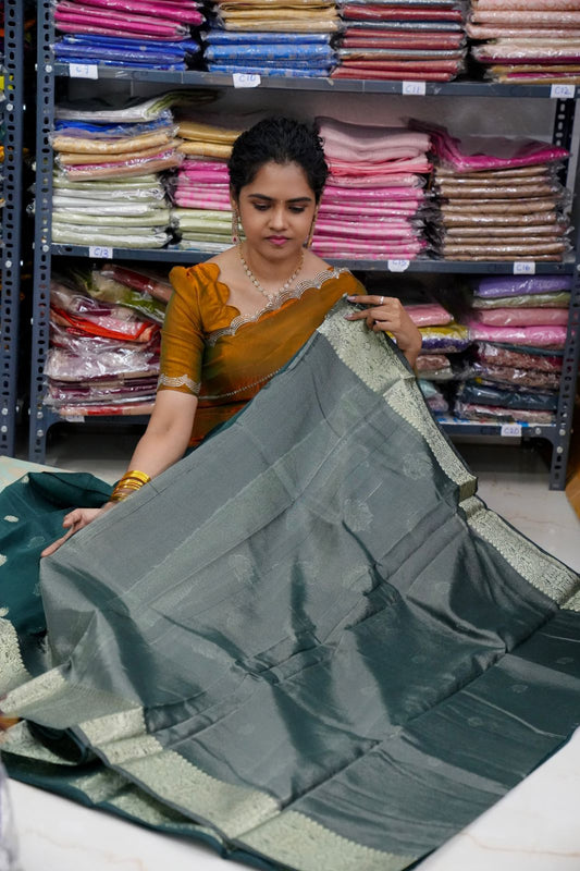 Soft & smooth jimmy cho satin with gold zari embroidery & sequence work with scalloped cutwork border with unstitched embroidery work blouse🥳
