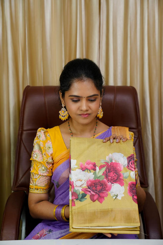 Offer Premium kanchi soft silk saree with running blouse(Golden yellow)๐