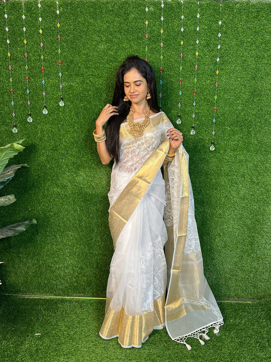 Organza Saree with Thread Embroidery prebook🥳
