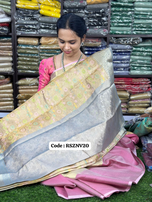 Kanchi bridal semi silk saree with runing blouse😍Green with blue