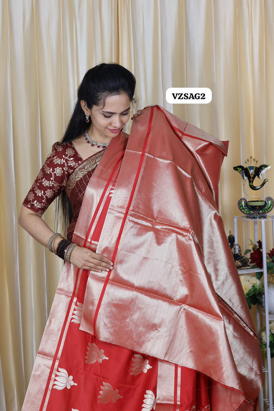 Premium Viscose Georgette Saree checks zari With Dola Viscose Blouse 😍🥳Red