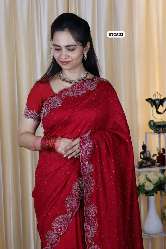 Party wear Chinnon silk with heavy work with running blouse 😍🥳