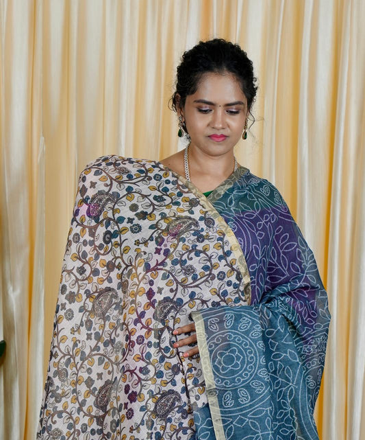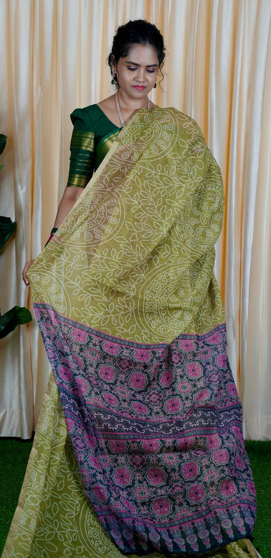 Jute linen sarees With kalamkari style blouse🥰😎