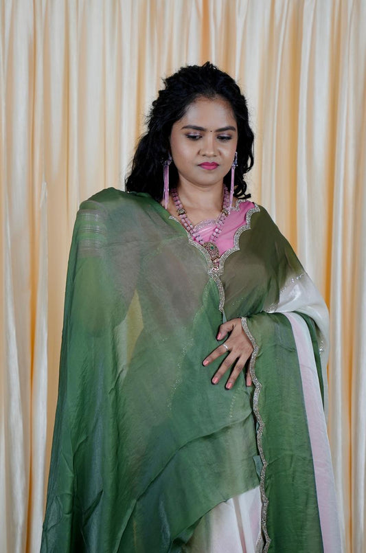 Keerthi suresh inspired chinon saree with lace border and extra blouse 😍🥳