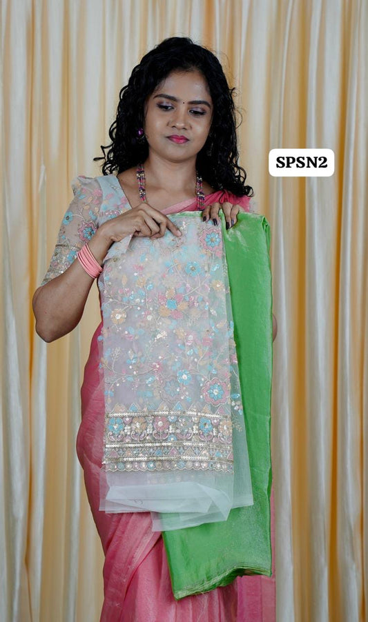 Space silk tissue sarees with heavy embroidery chumky work blouse unstitched🥰😎🥳