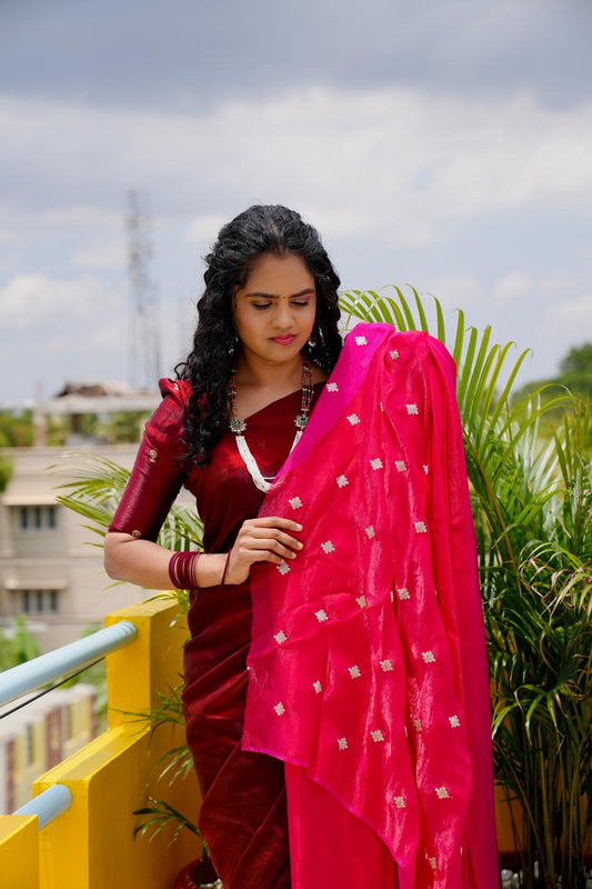 Premium Space silk saree with embroidery work and contrast blouse 🥳