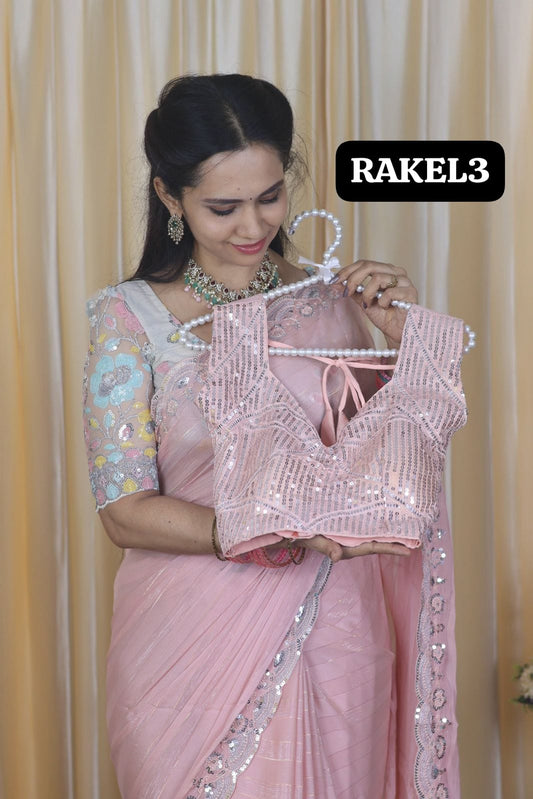 Buttery soft chiffon saree with heavy work blouse stitched with pad🥳