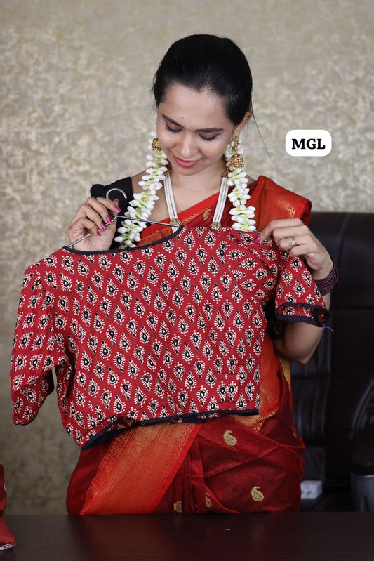 Ajrak print blouse with black piping 😍🥳