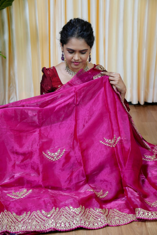 Crushed space silk with embroidery scalloped border 🔥😍🥳prebook Dispatch time 20 to 25 days