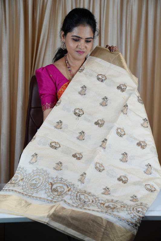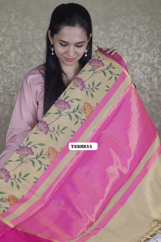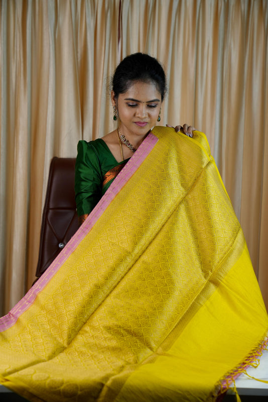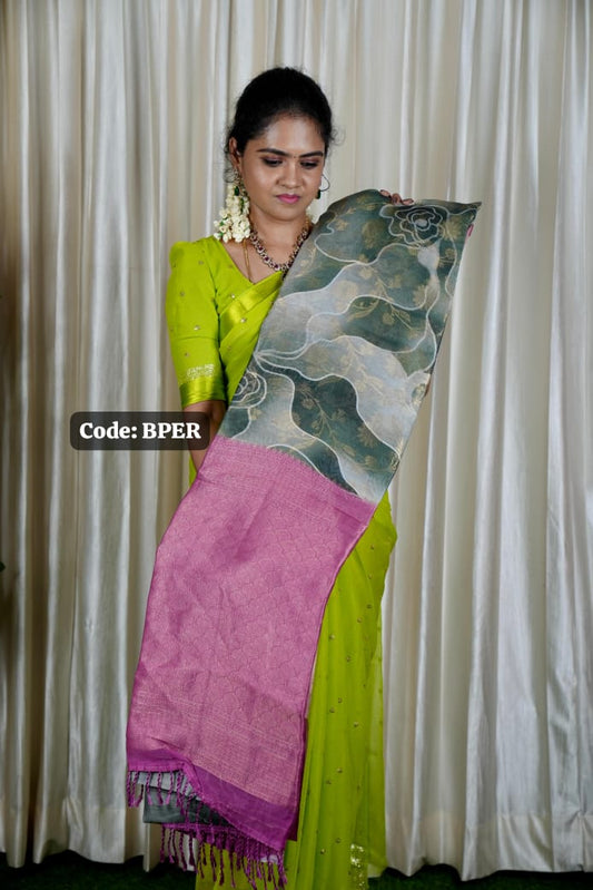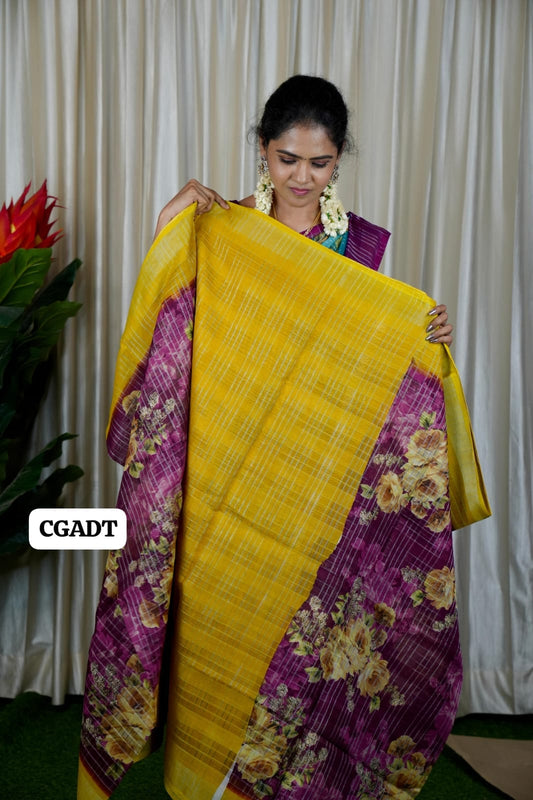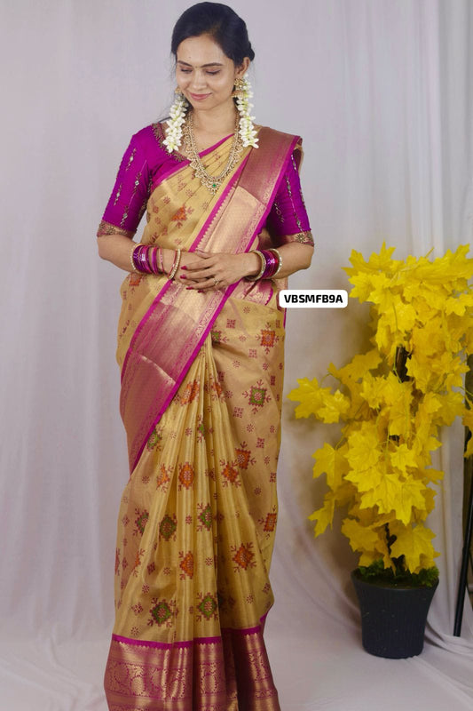 Combo offer 😍 Golden soft tissue saree + work blouse