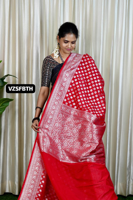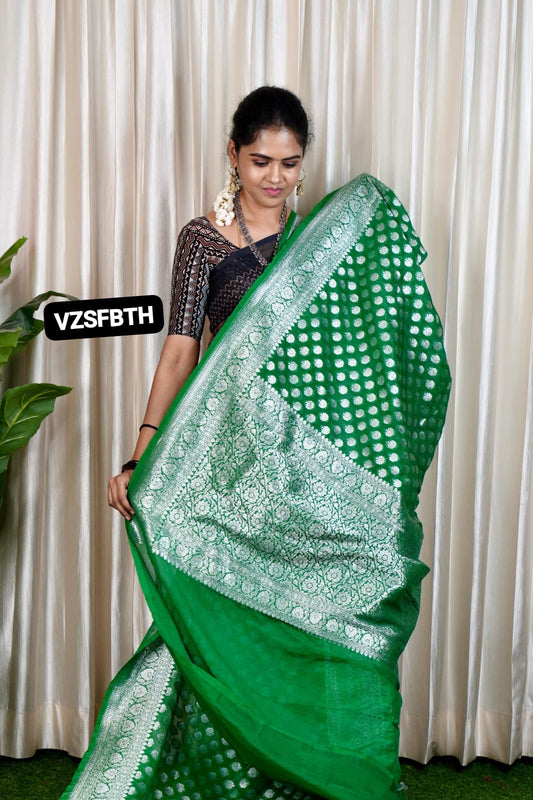Premium kadhi georgette with heavy 1000 buttas silver zari weaving saree 🥳
