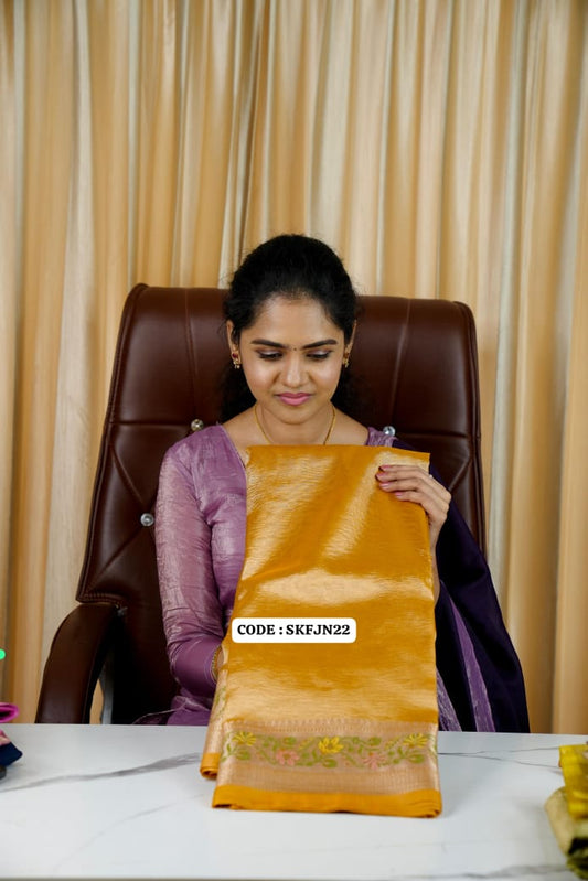 Manglori semi silk soft cotton sarees with plain blouse border to sleeves😍