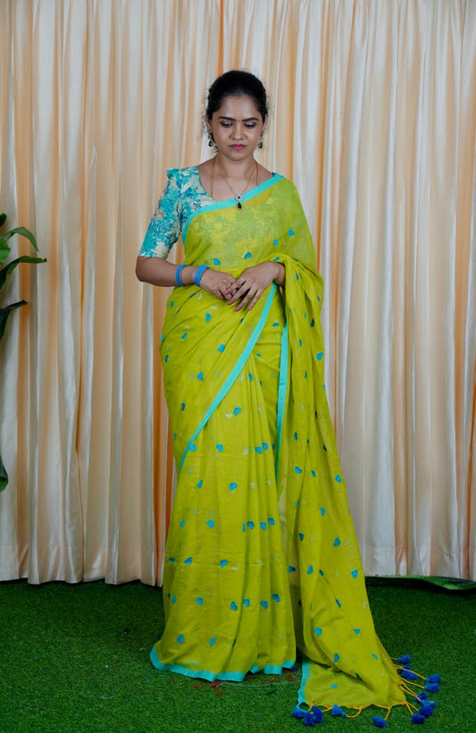 Premium quality Soft mul mul cotton saree with heart embroidery🥳