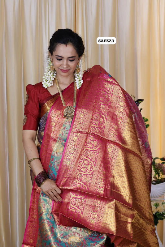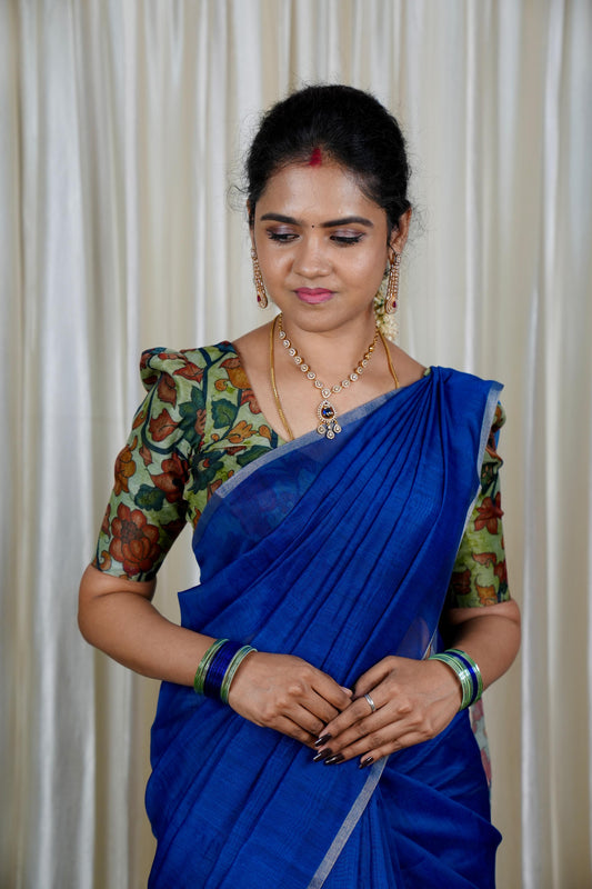 Soft silk sarees in thousand buttas style with Contrast Blouse 🥰😎
