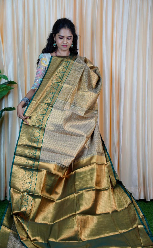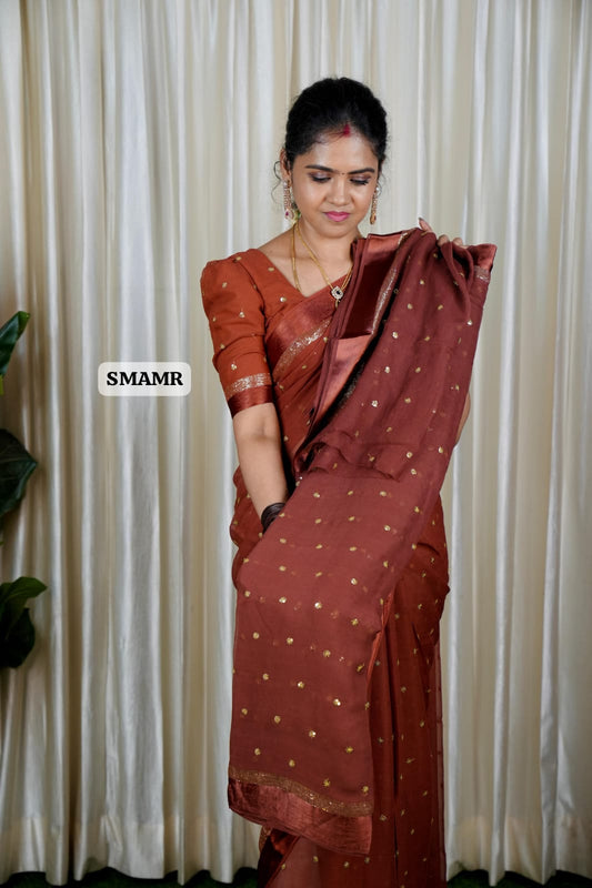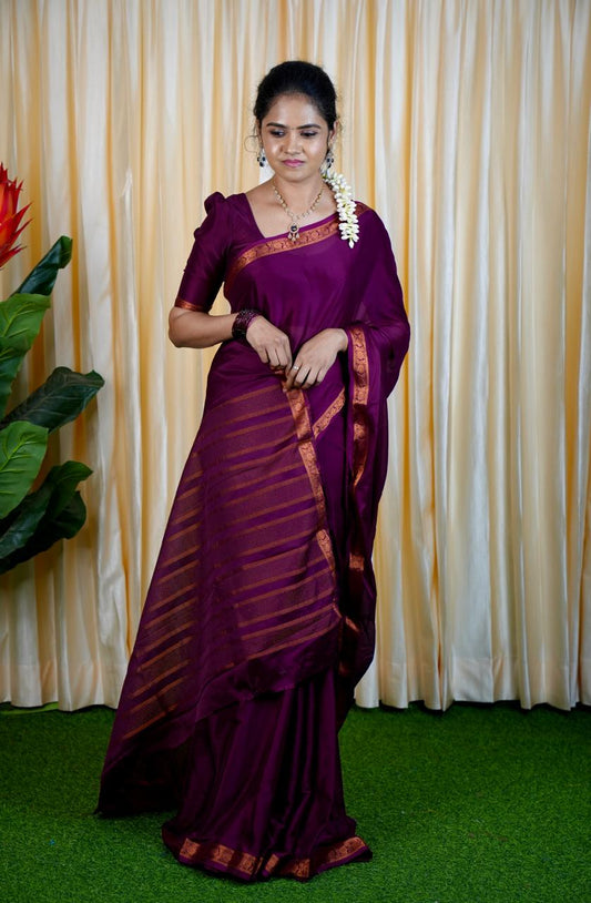 Semi Mysore Crepe Silk with copper border🥳(border design may or may not change)