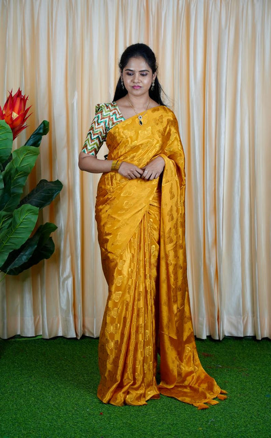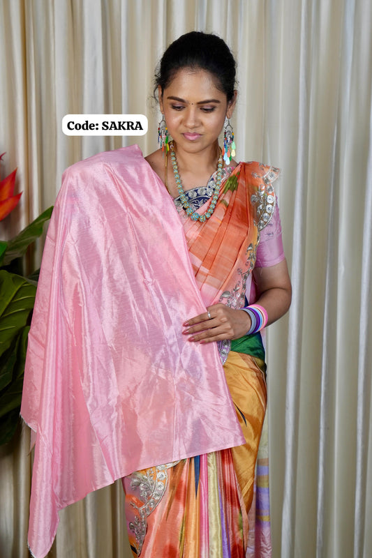 Shiny satin silk Saree Plus Contrast Blouse prebook🥳