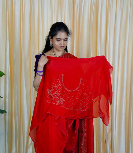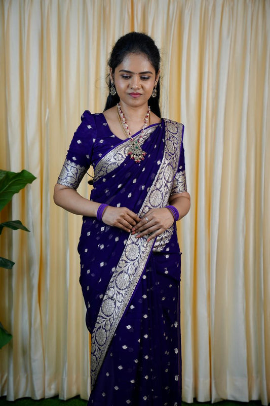 Viscose Georgette sarees😍blouse(Darkest blue)