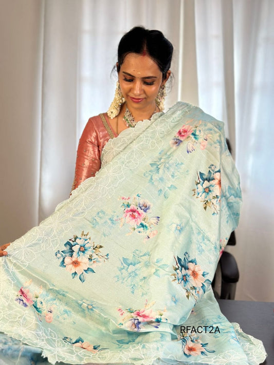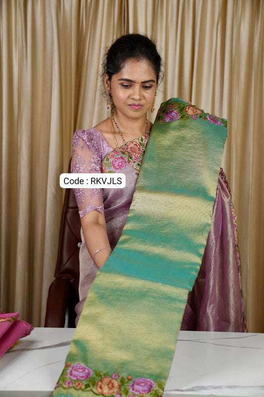 Crushed tissue saree with cutwork border Green colour prebook prebook 🥳