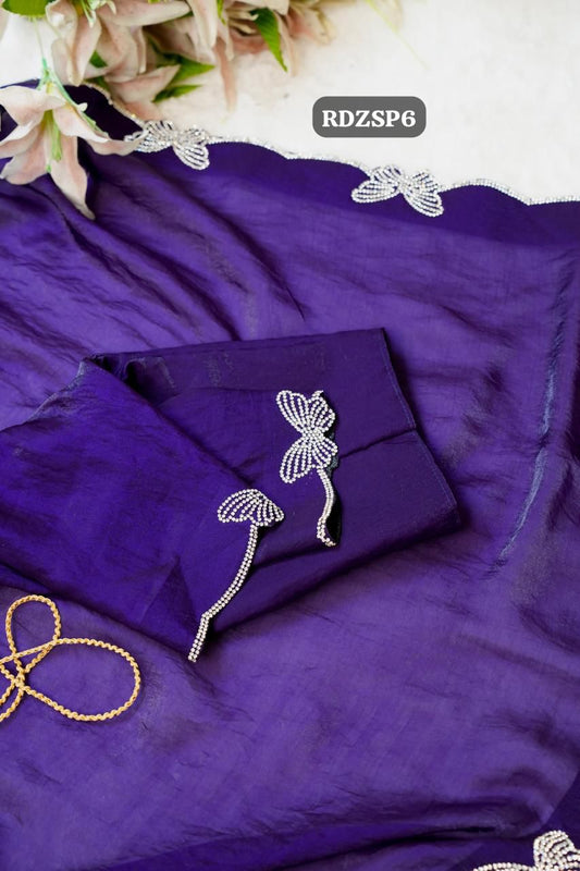 Space silk fabric with swaroski butterfly done on border with running blouse🔥🥳Dark maroon