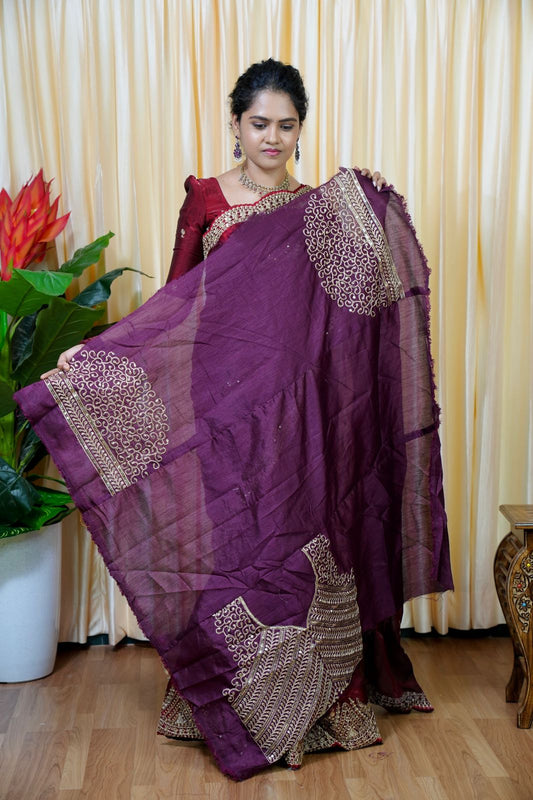 Space silk tissue sarees with heavy embroidery chumky work blouse 🥳✅