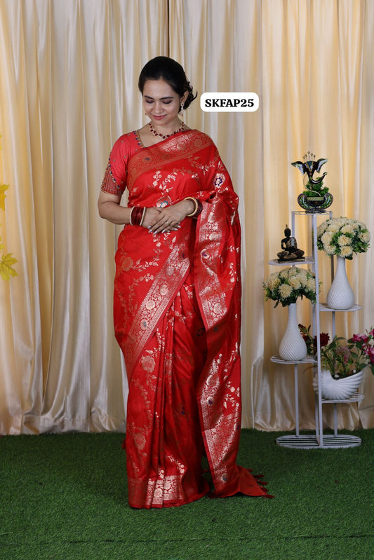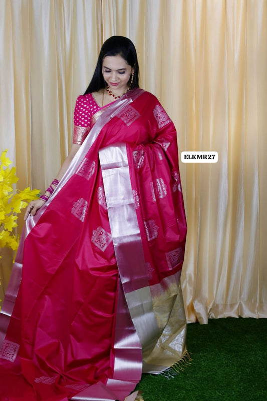 Soft Banarasi silk saree with zari weaving all over the saree & Zari weaving Rich pallu🍄🥳