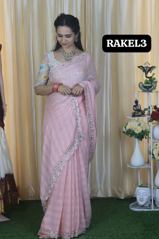 Buttery soft chiffon saree with zari lines and heavy work blouse unstitched 🥳prebook