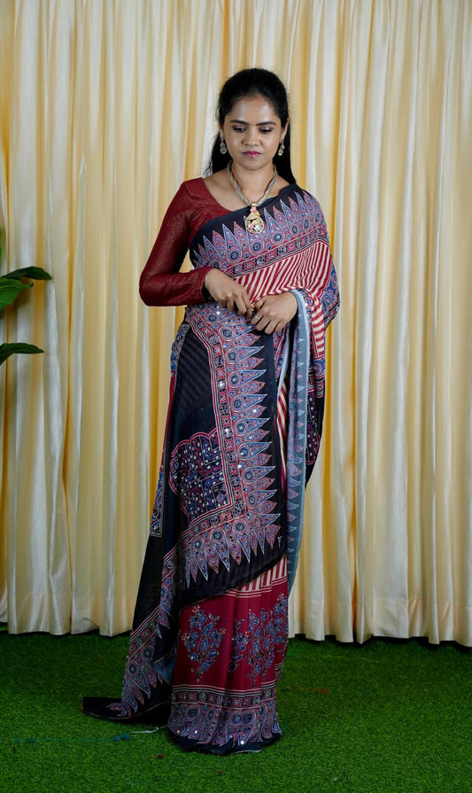 Premium Viscose Georgette Saree checks zari With Dola Viscose Blouse🥳Dispatch time 20 to25 days