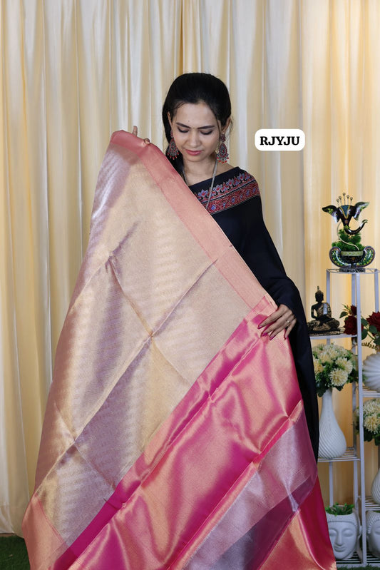 Jothika inspired saree,Katan tissue. in cross strips 🥳